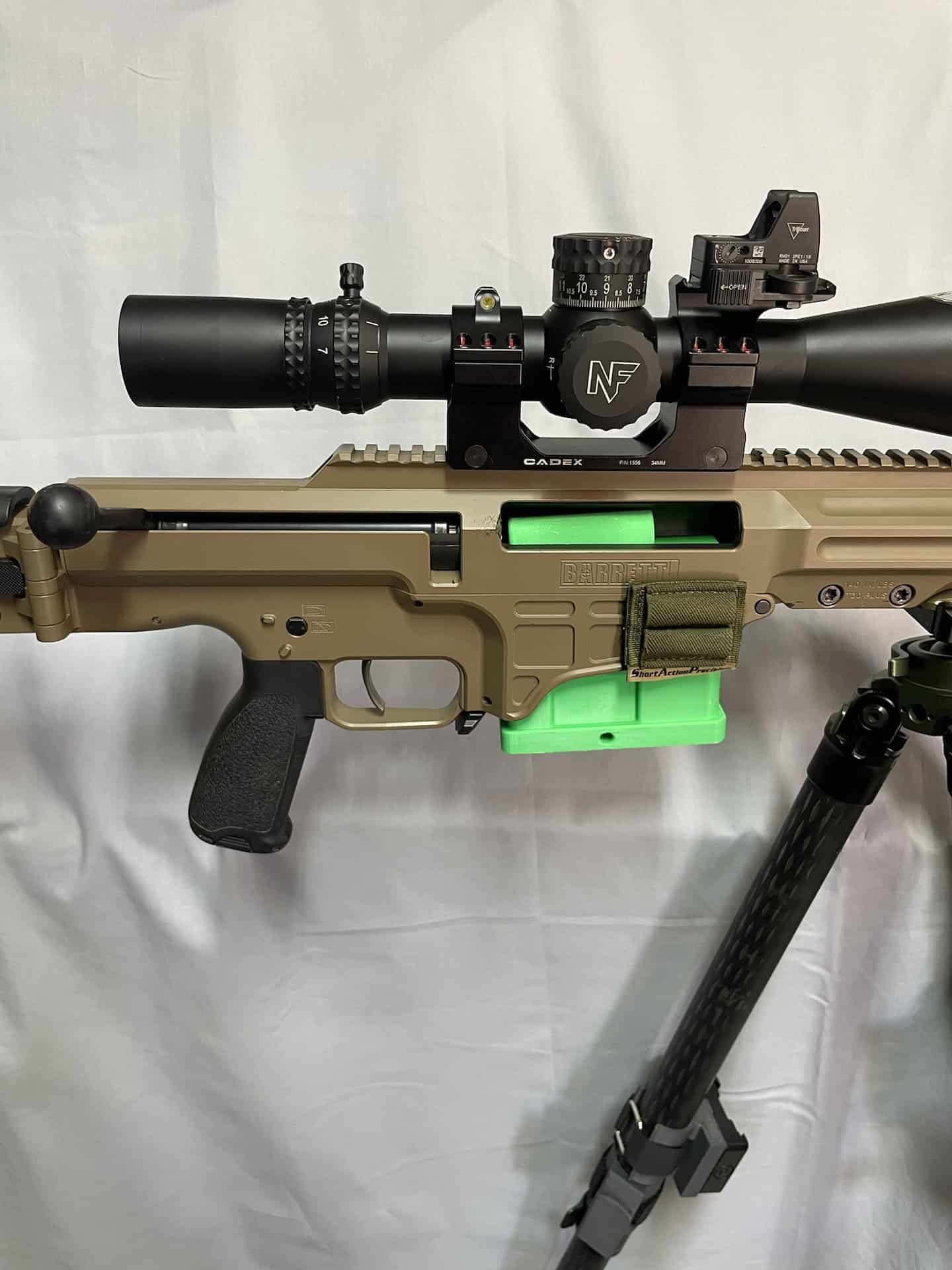 This high-visibility, custom-fit safety indicator is specifically crafted for competition shooters using the Barrett MRAD. It features a flared bottom that allows for removal with one hand, whether from the firearm or a mag pouch, allowing for a smooth routine to stay in stage compliance with the Range Officer directions.