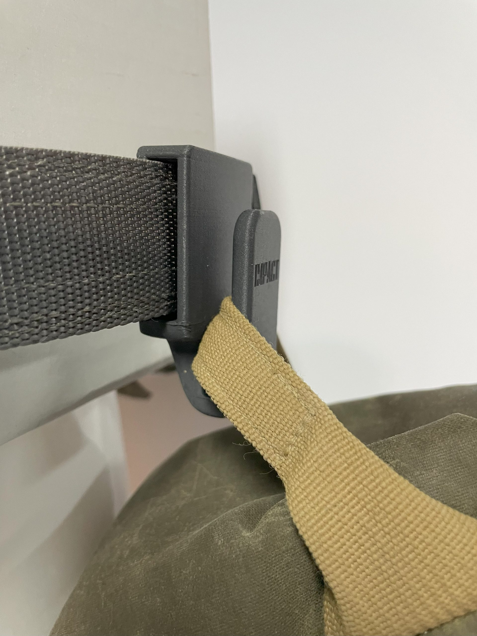 This bag hook is specifically developed for competition shooters, facilitating rapid and efficient bag retrieval directly from the belt. Its design allows for quick access, enhancing performance and efficiency during competitive stages.